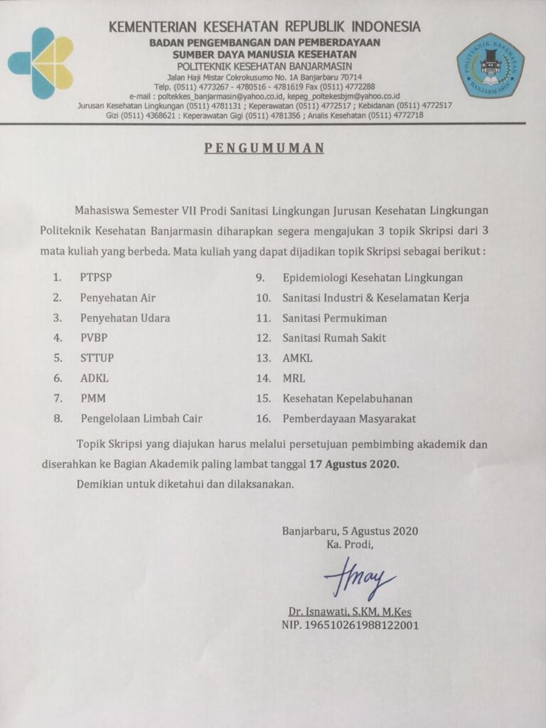 Jurusan Kesehatan Lingkungan Poltekkes Kemenkes Banjarmasin